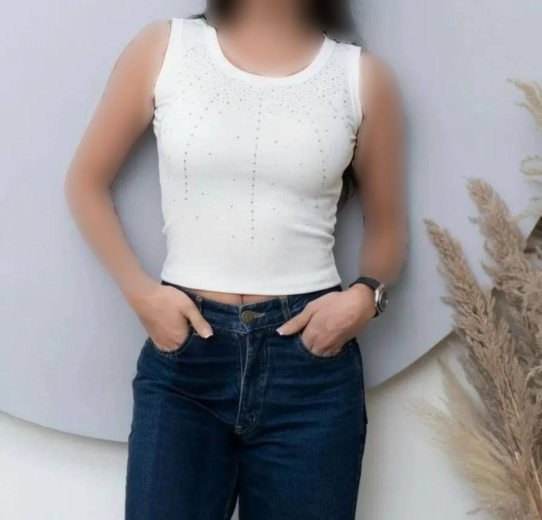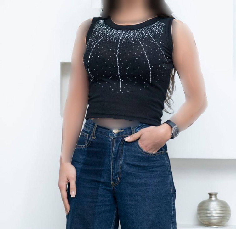 کراپ تاپ نگین دار زیبا در دو رنگ سفید و مشکی