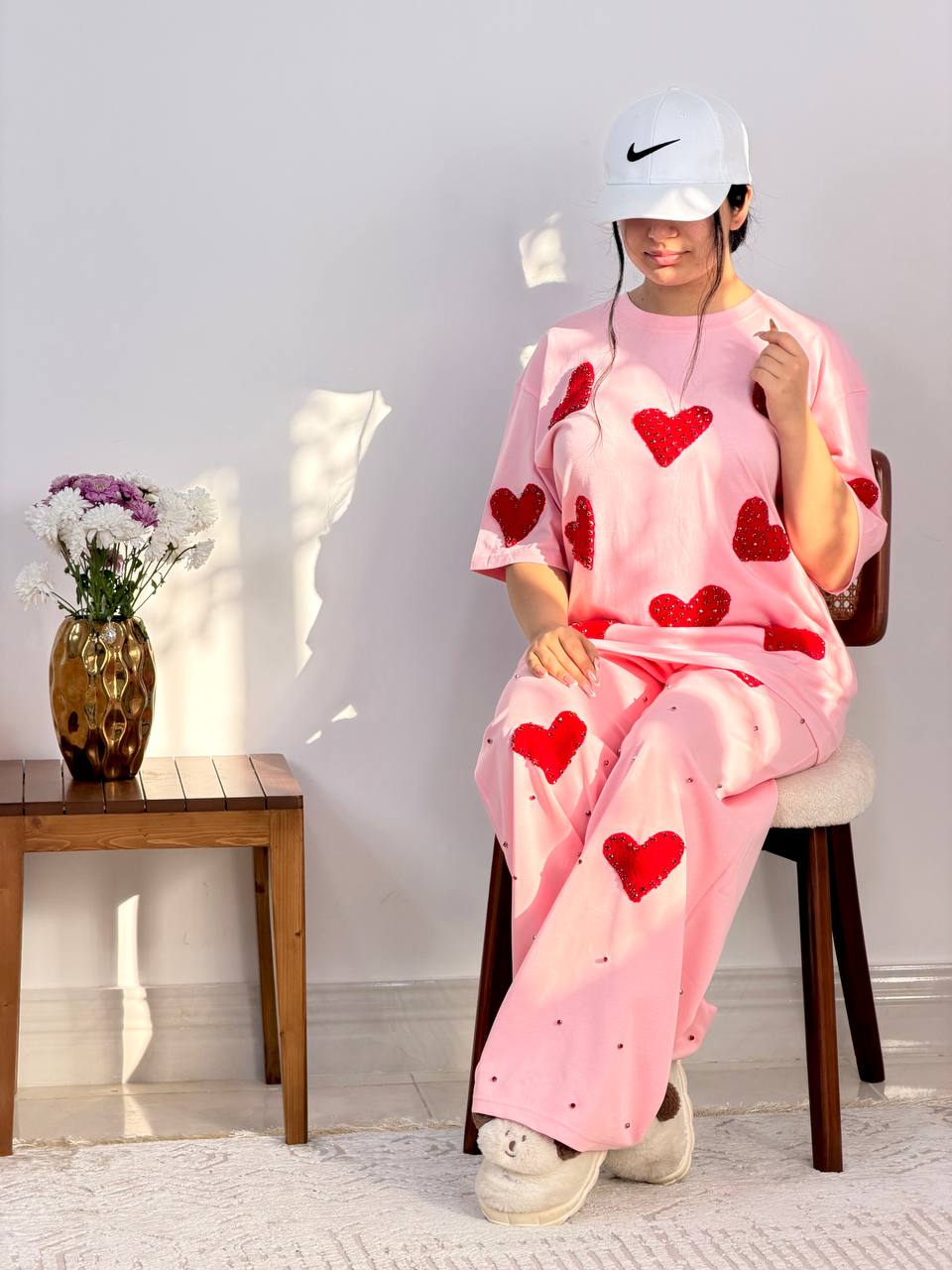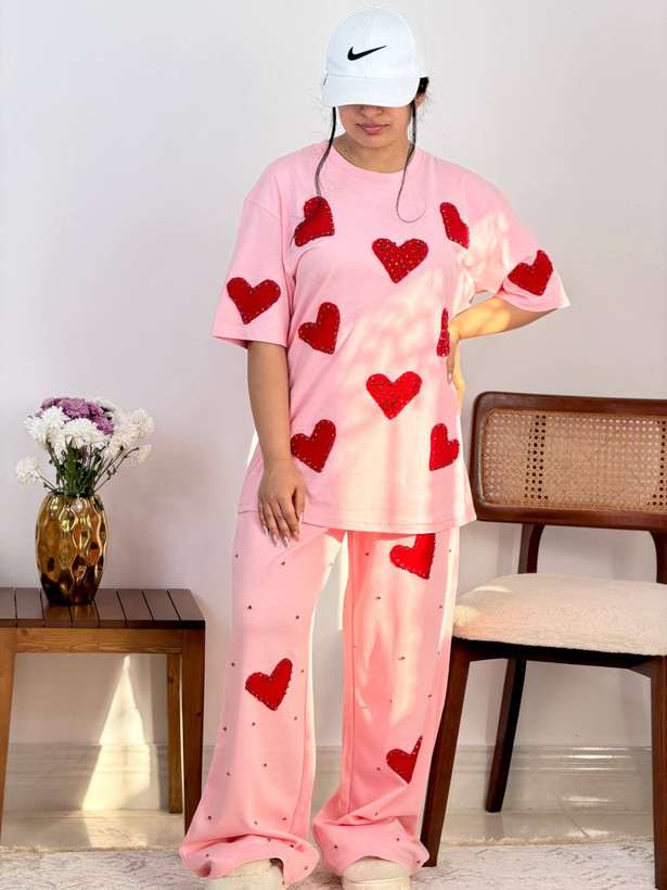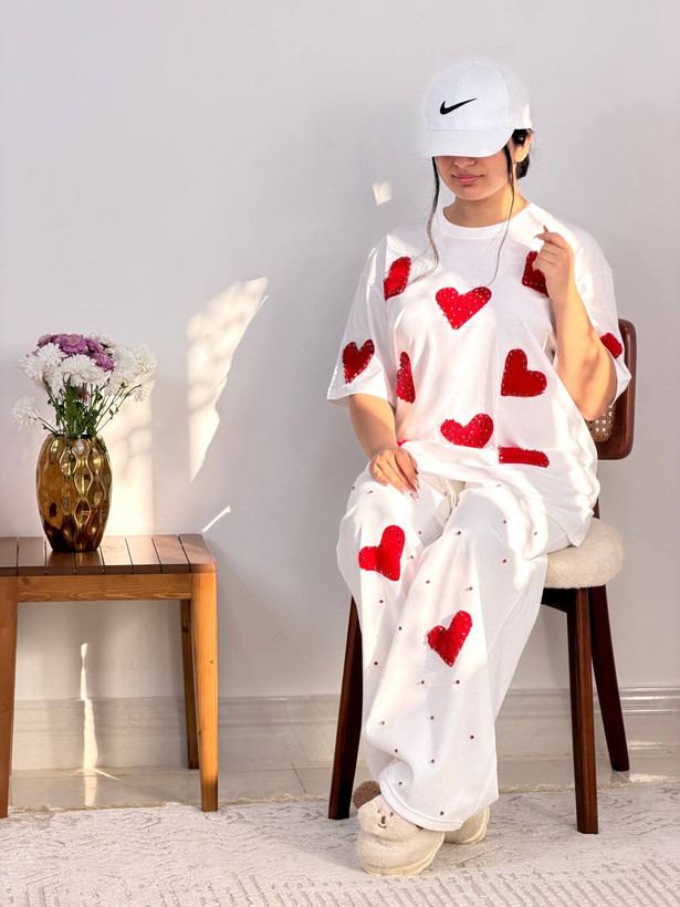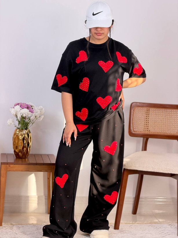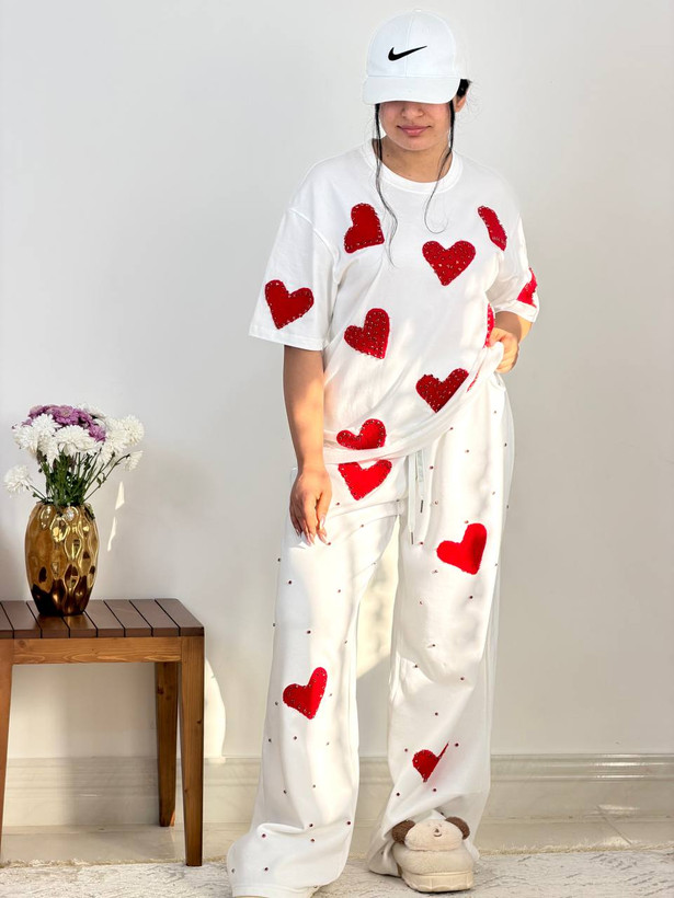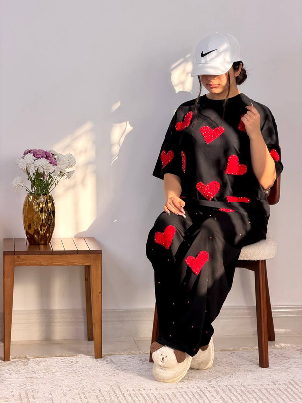 ست دو تیکه نگین دار قلبی در سه رنگ