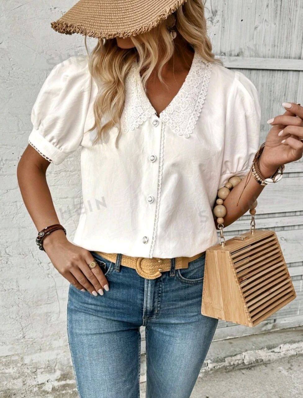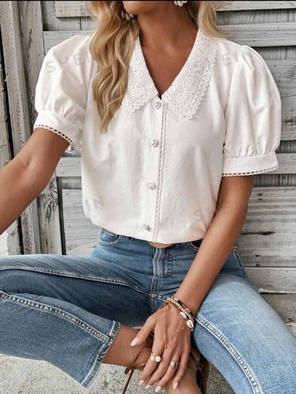 💥شومیز یقه خامه دوزی برندshein😍