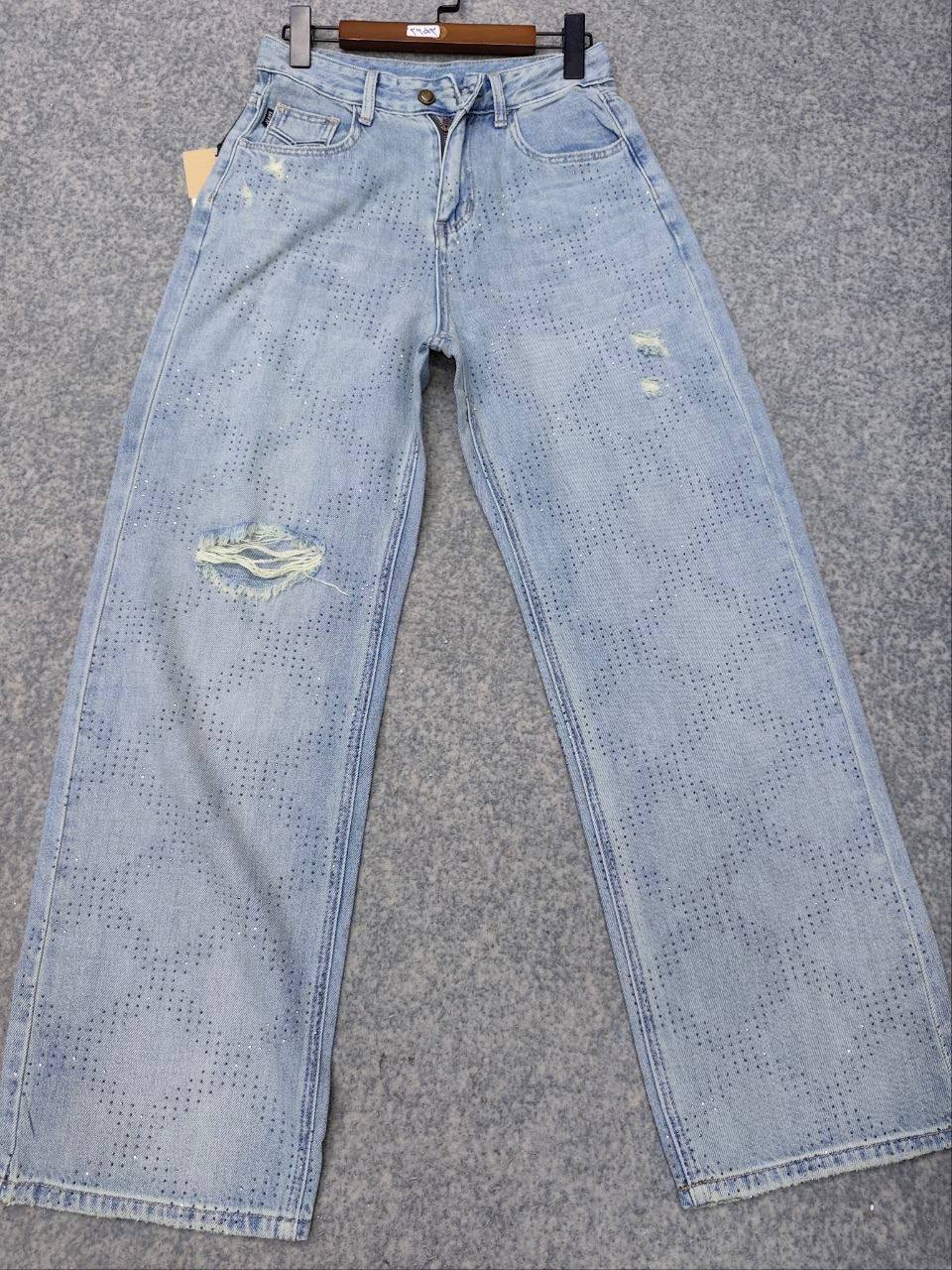 شلوار جین تکرنگ نگین دار ۲۸۴۶