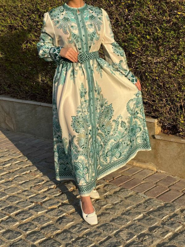 توضیحات: پیراهن طرح ترک مناسب 36 تا 44 فری سایزمیباشد قد پیراهن 135cm دور سینه 104cm دورکمر 102cm همراه کمربند جنس کنف شمعی