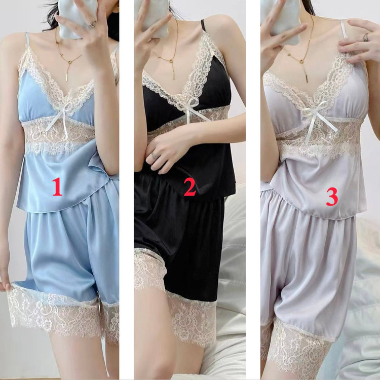 ست تاپ و شورتک ساتن وارداتی در طرح های زیبا و شیک ۲۸۹۴