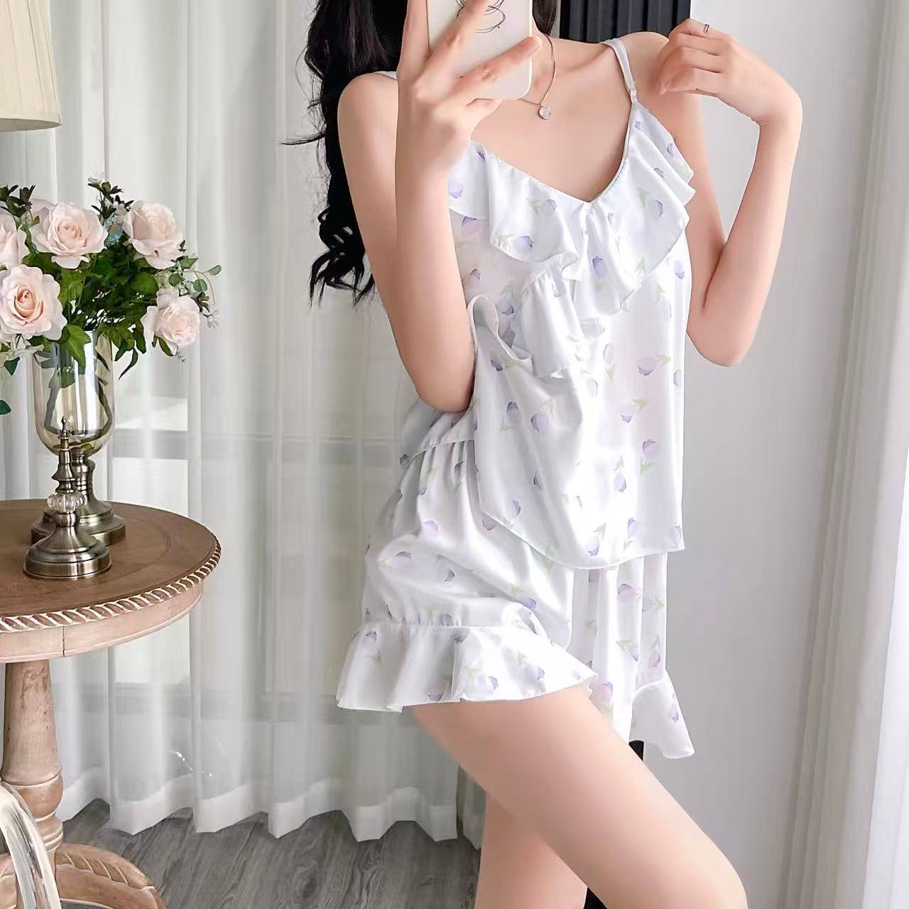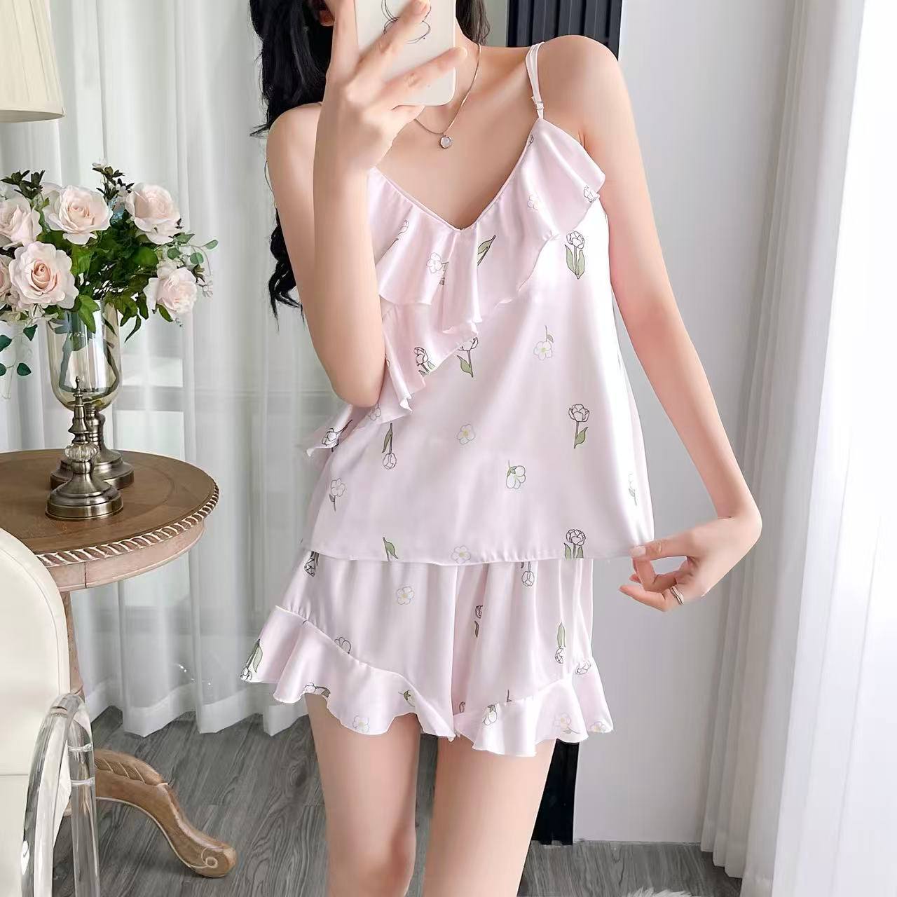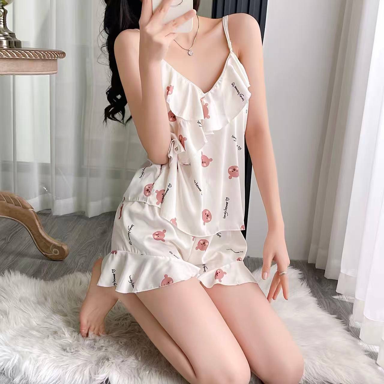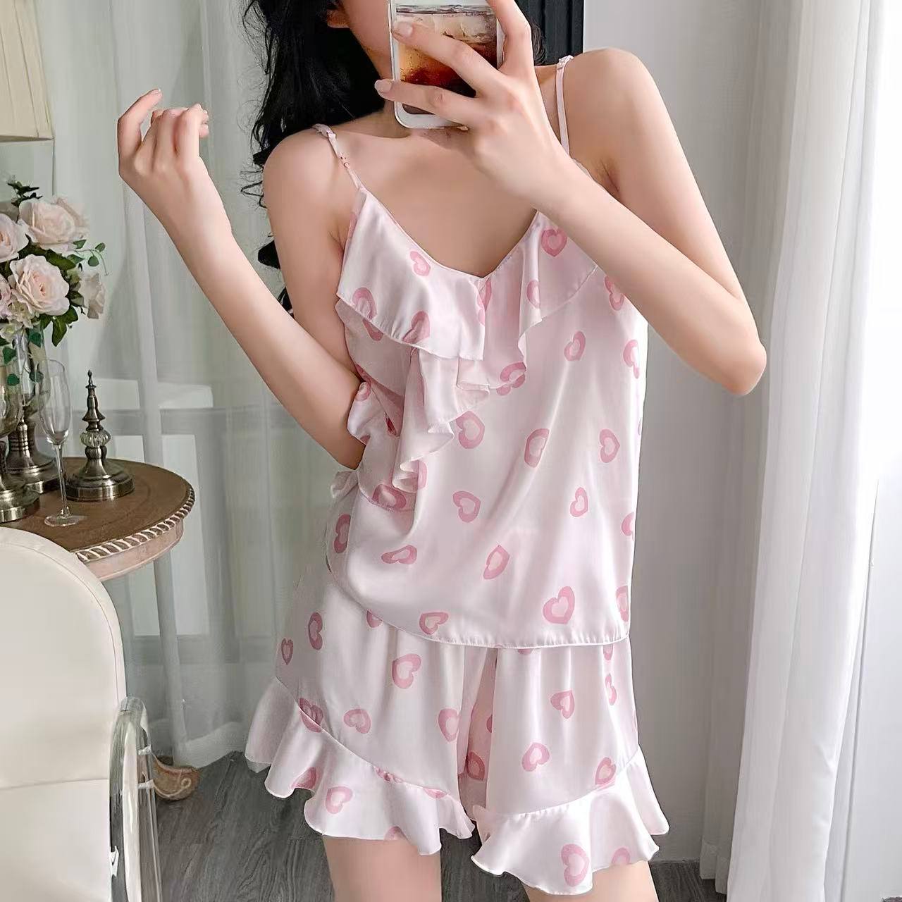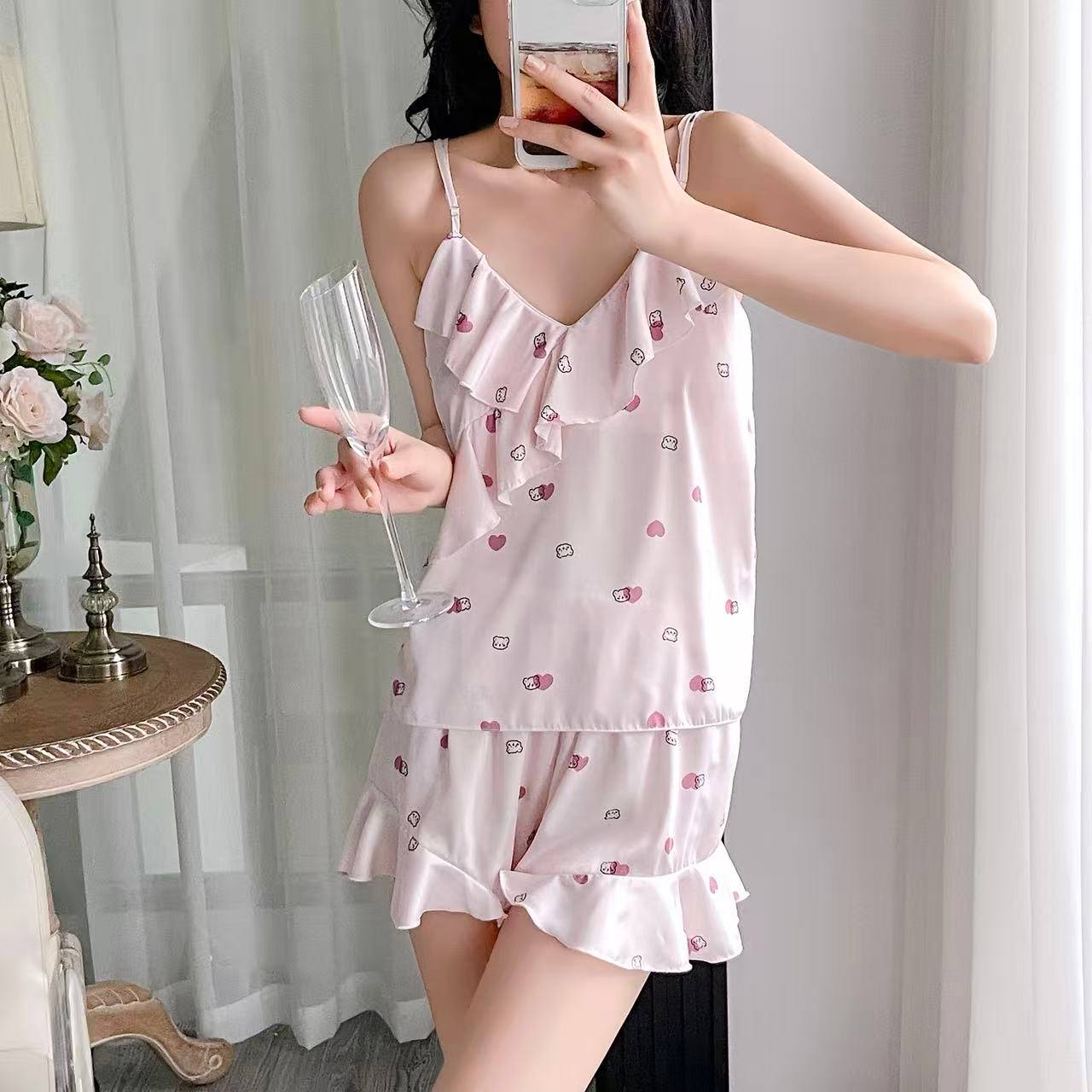 ست تاپ و شورتک ساتن وارداتی در طرح های زیبا و شیک ۲۸۹۶