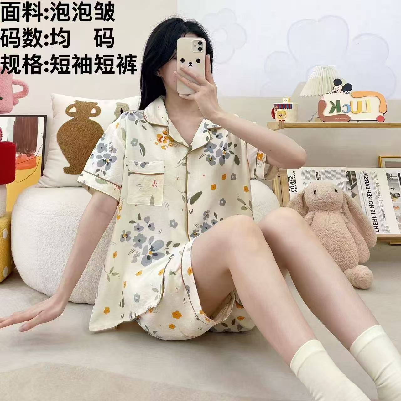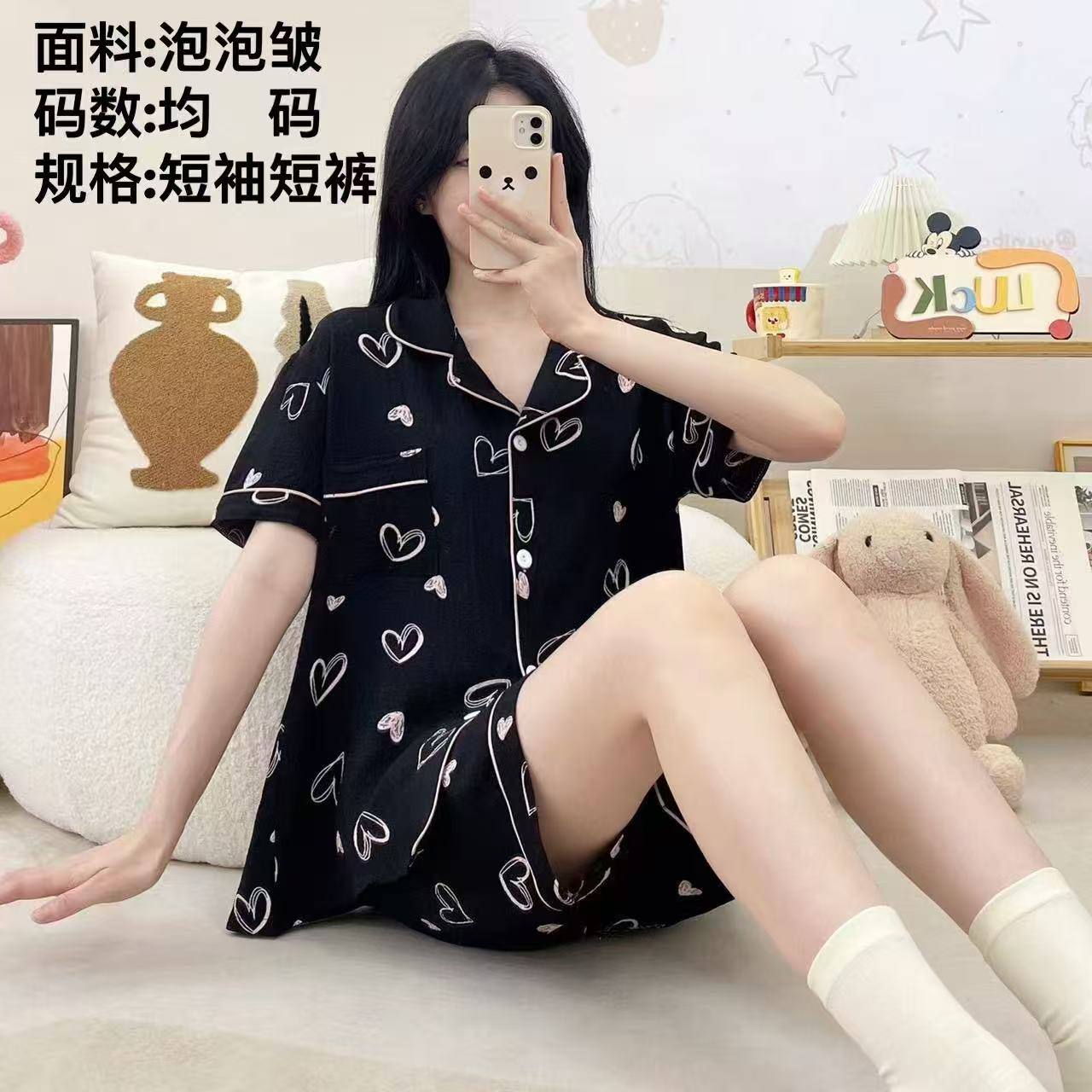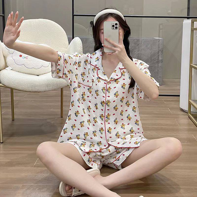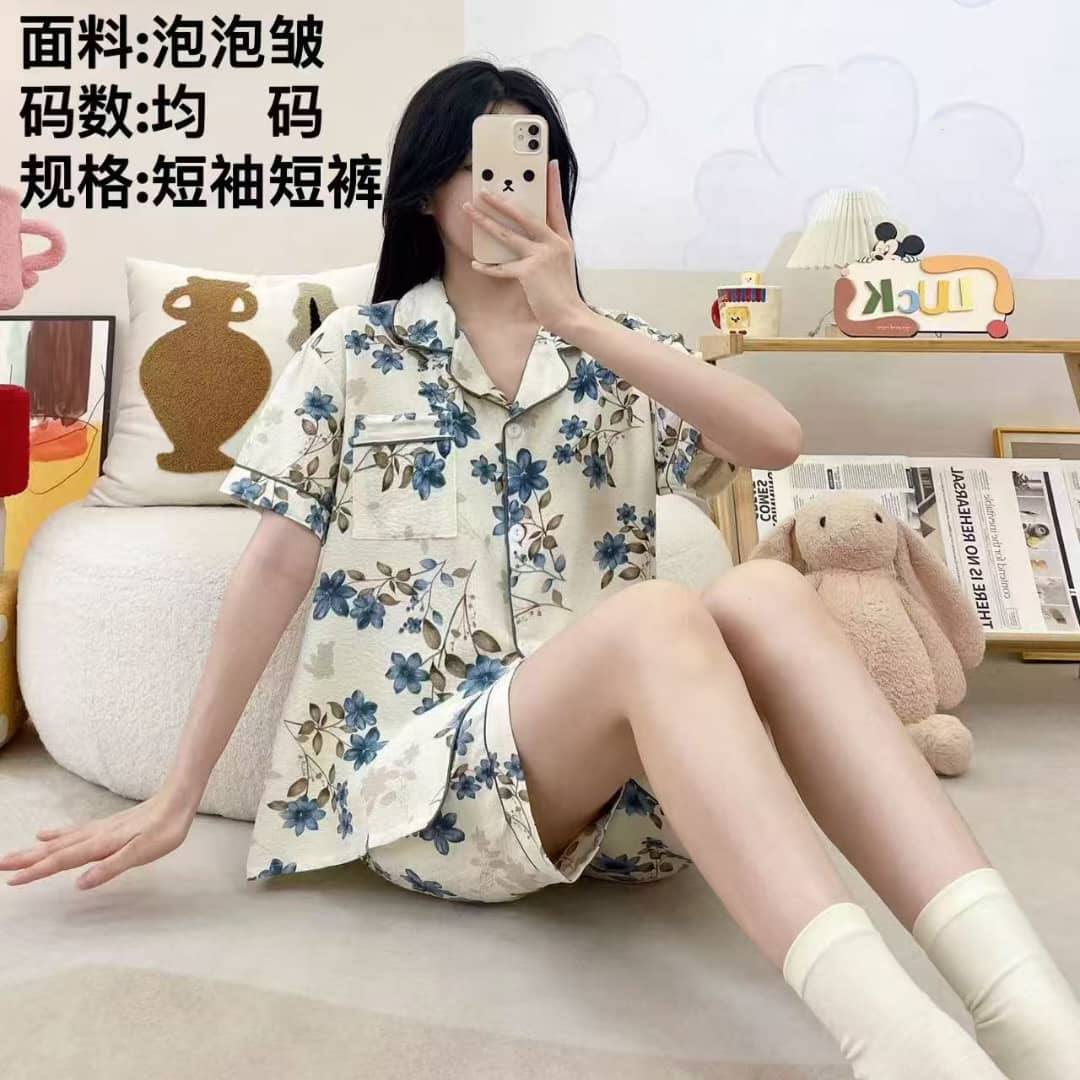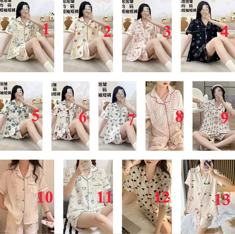 ست دوتیکه بلوز و شورتک نخی وارداتی در طرح های متنوع ۲۹۰۱