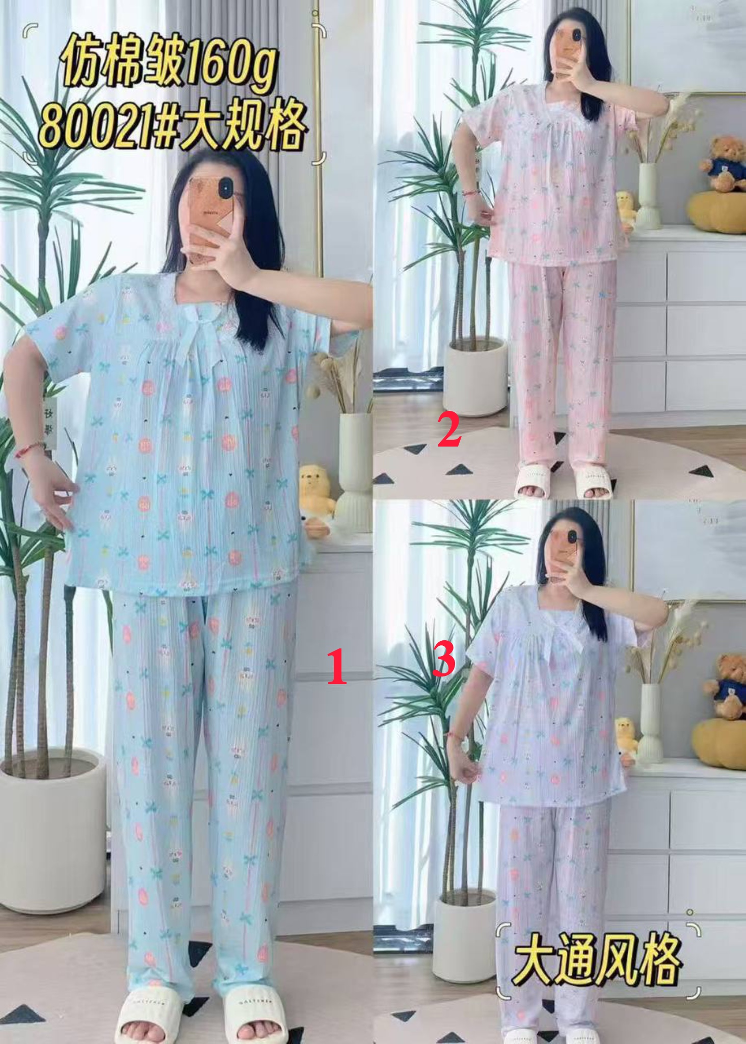 ست تیشرت و شلوار نخ کریشه قواره بزرگ وارداتی در سه رنگ ۲۹۰۶