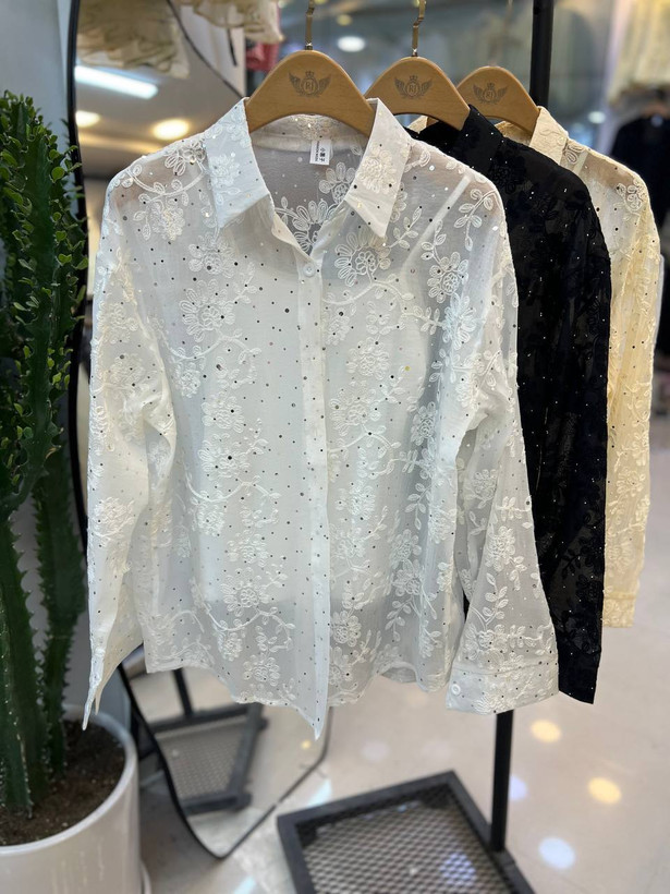 شومیز گلدوزی دو تیکه وارداتی در سه رنگ ۲۹۴۹