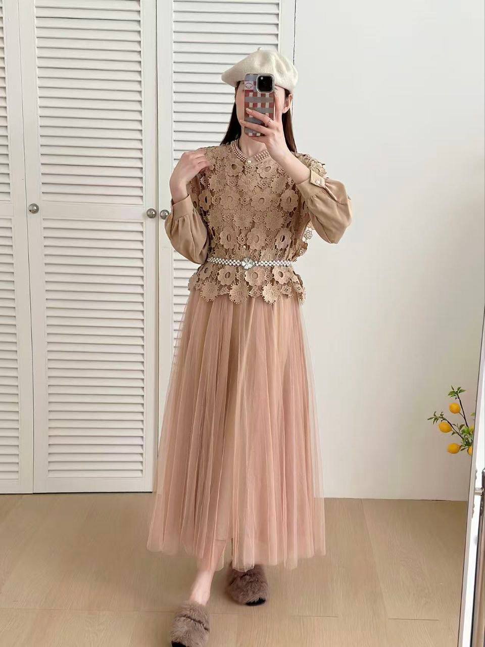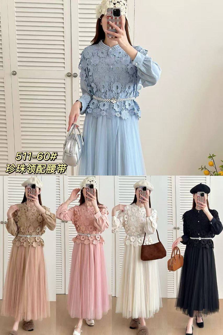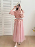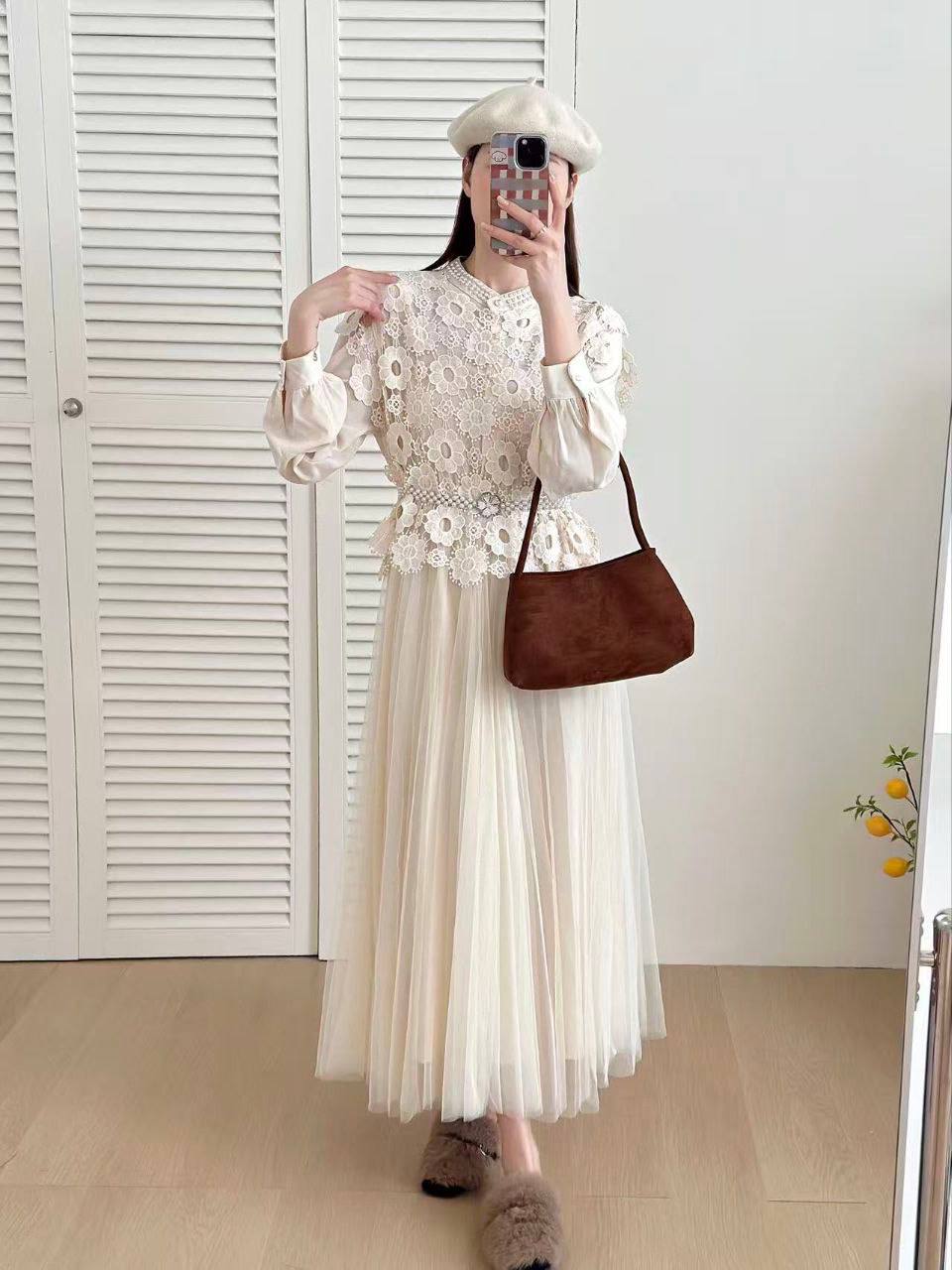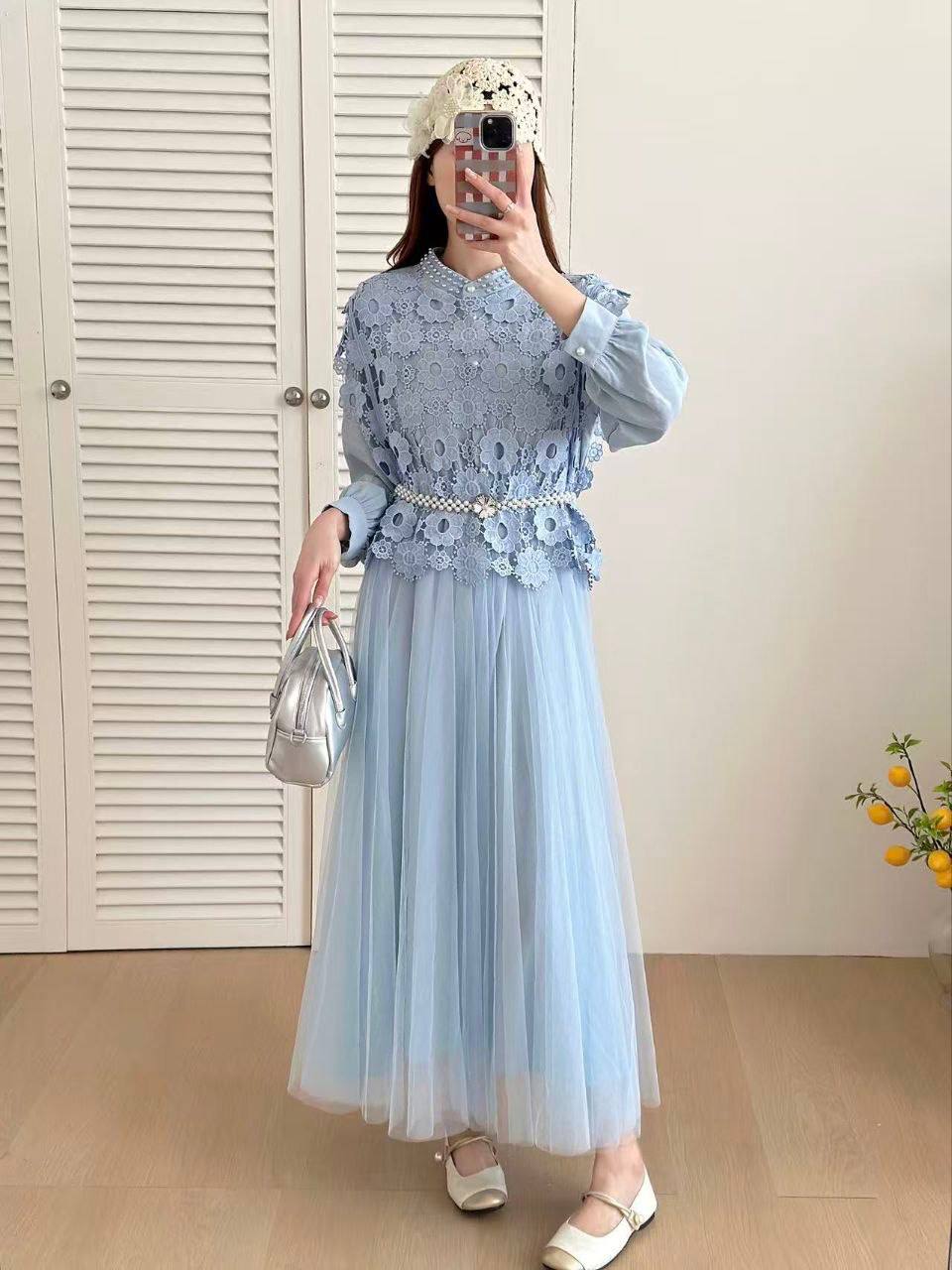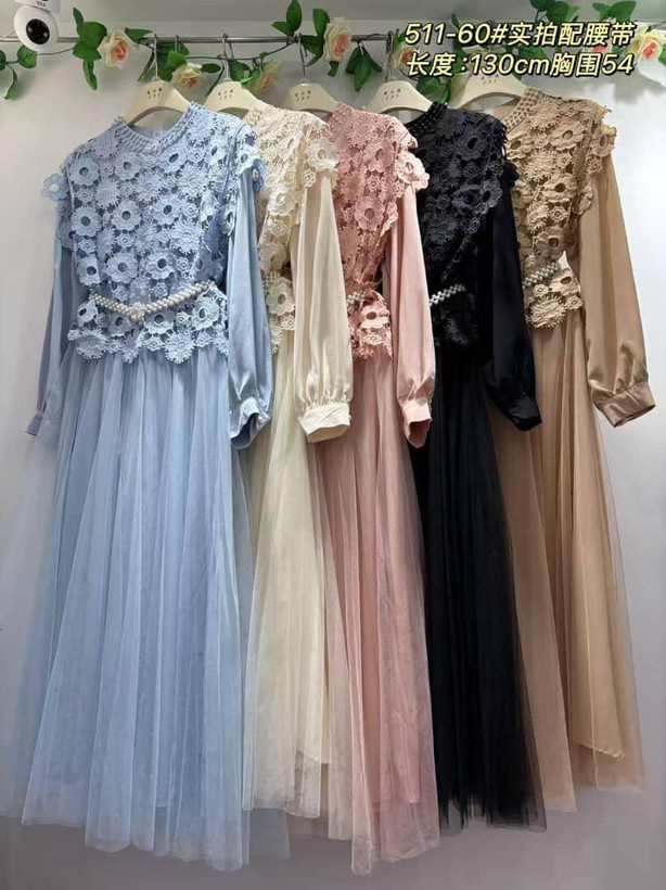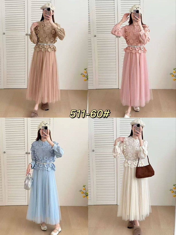 ✔️ شامل: دامن رویه توری بلند و جلیقه دانتل