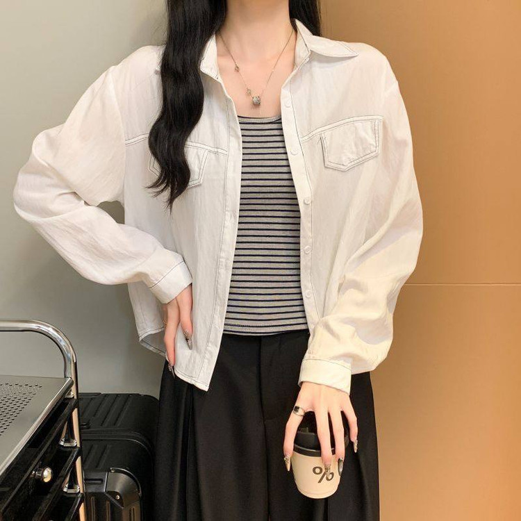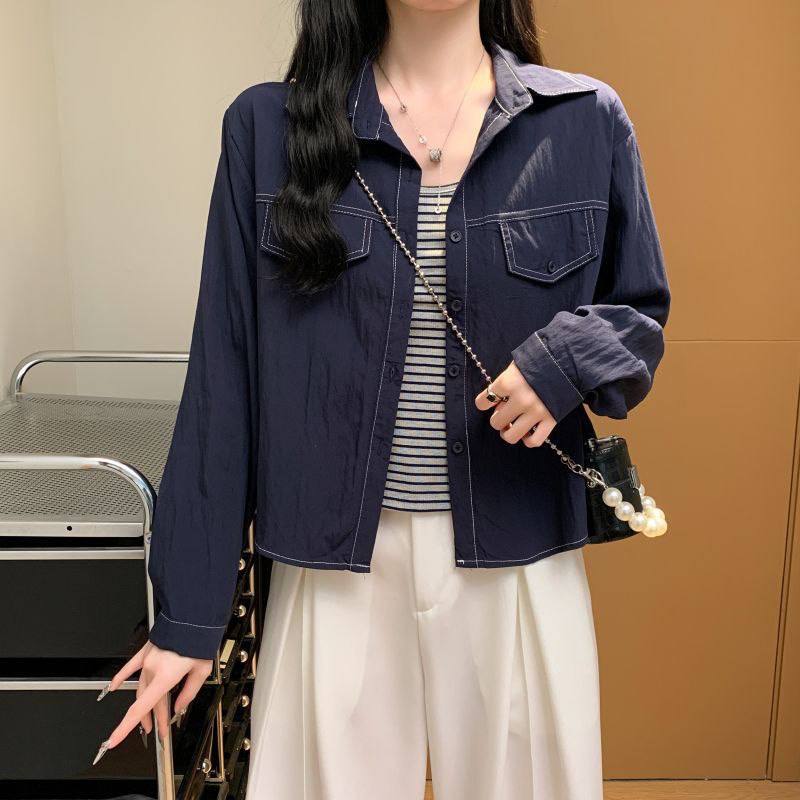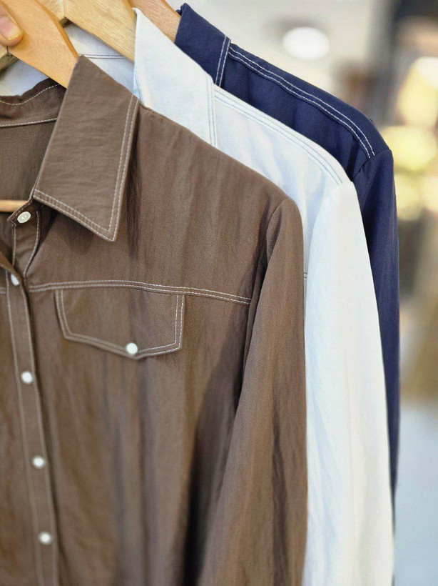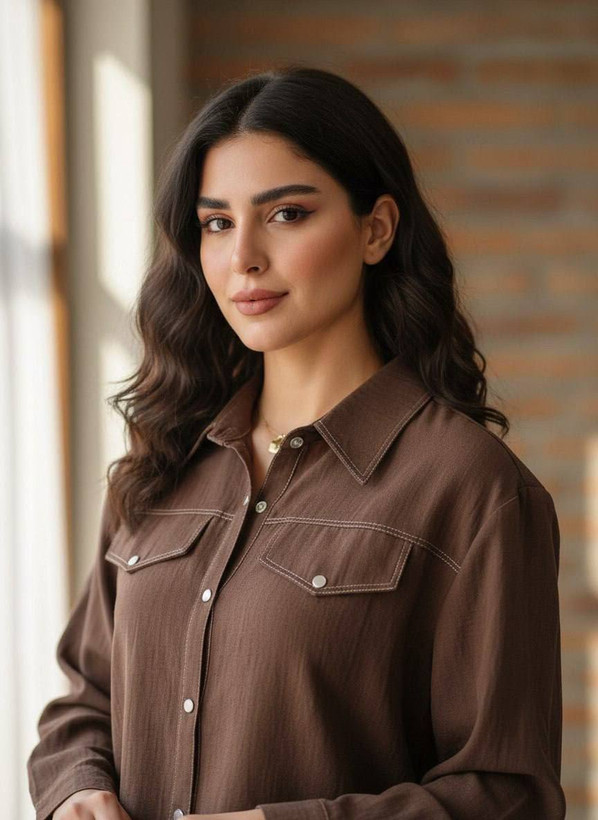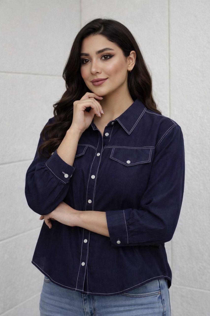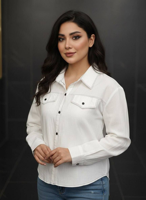 شومیز کراپی وارداتی طرح جیب دار در سه رنگ ۲۹۵۷