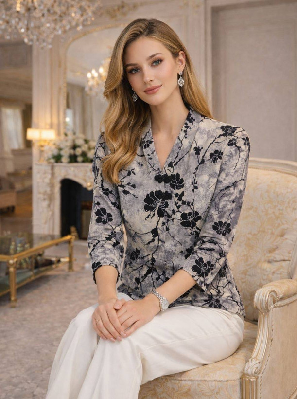 شومیز طرح دار وارداتی یقه هفتی ۲۹۵۹