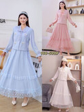 ✔️ شامل: دامن رویه توری بلند و جلیقه بافت نرم لطیف