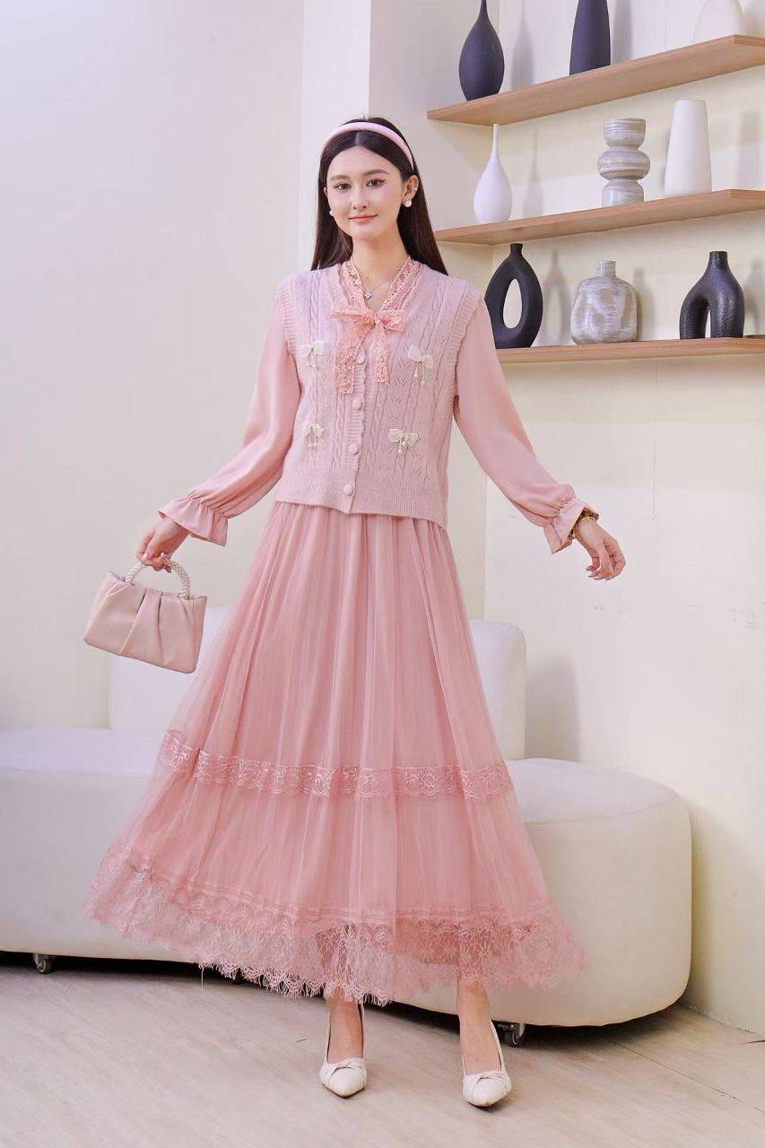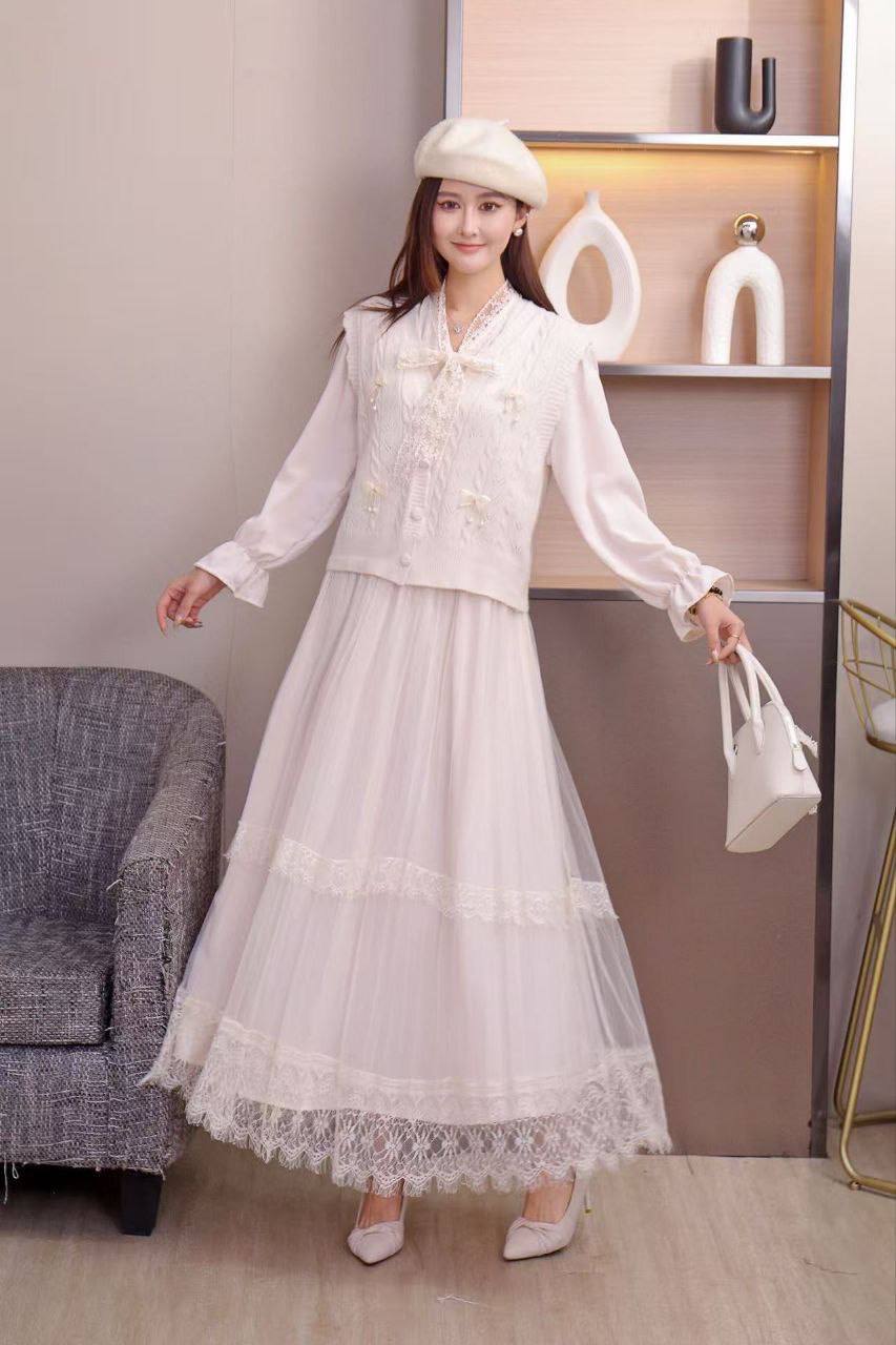 ✔️ شامل: دامن رویه توری بلند و جلیقه بافت نرم لطیف