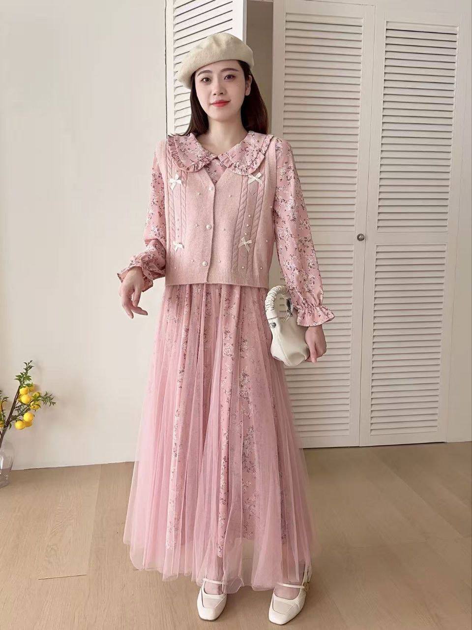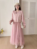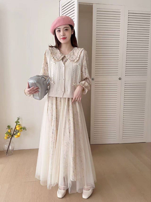 ✔️ شامل: دامن رویه توری بلند و جلیقه بافت نرم لطیف