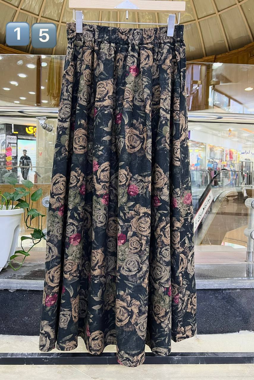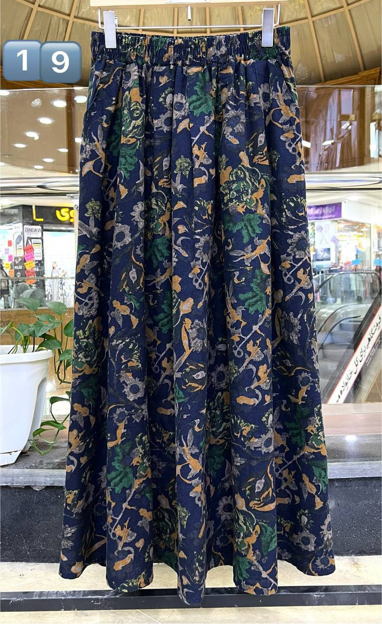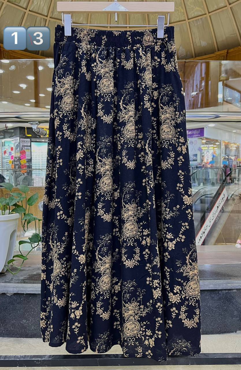 دامن کتان طرح سنتي كمر كش تراکم بالا گرم بالا فري سايز مناسب ٣٨/٤٠/٤٢/٤٤ جدول قد كار :١٠٠ سانت پهناكار:١٣٢ سانت