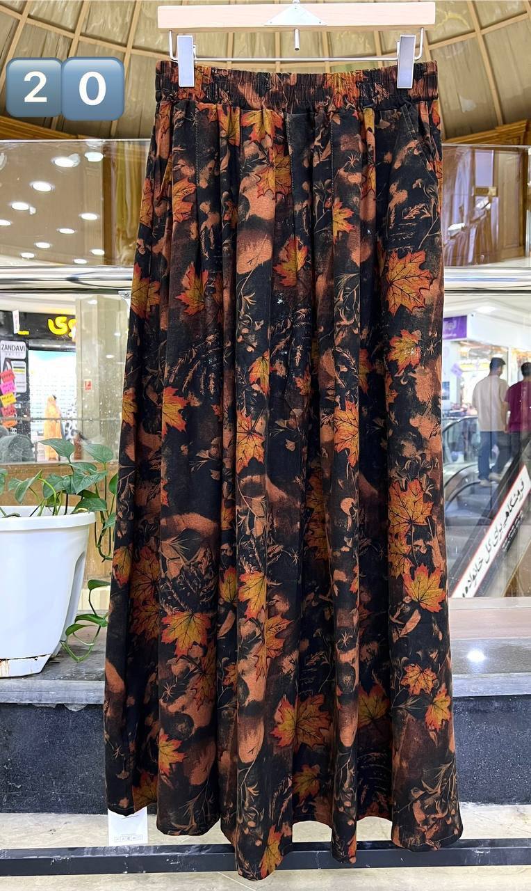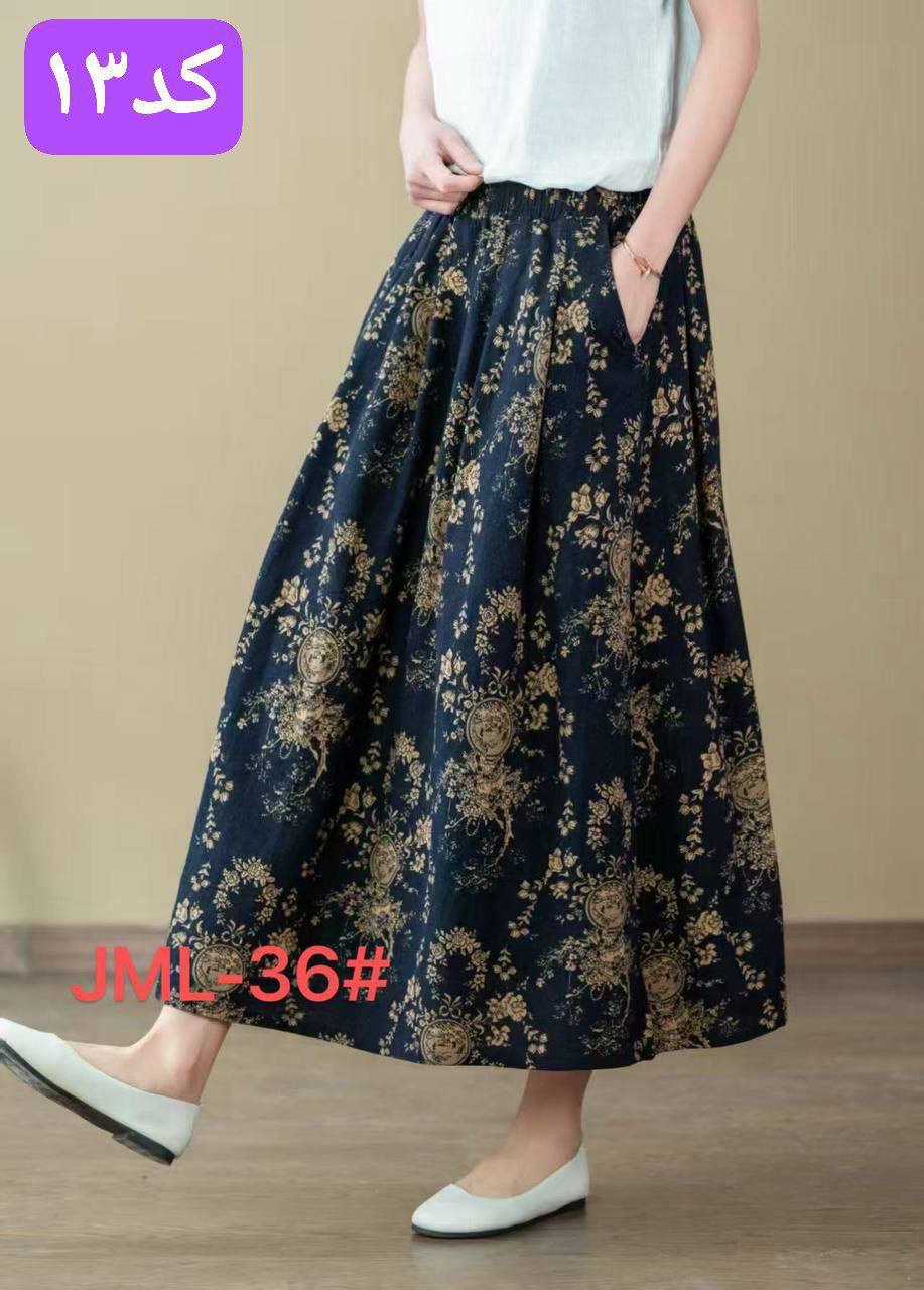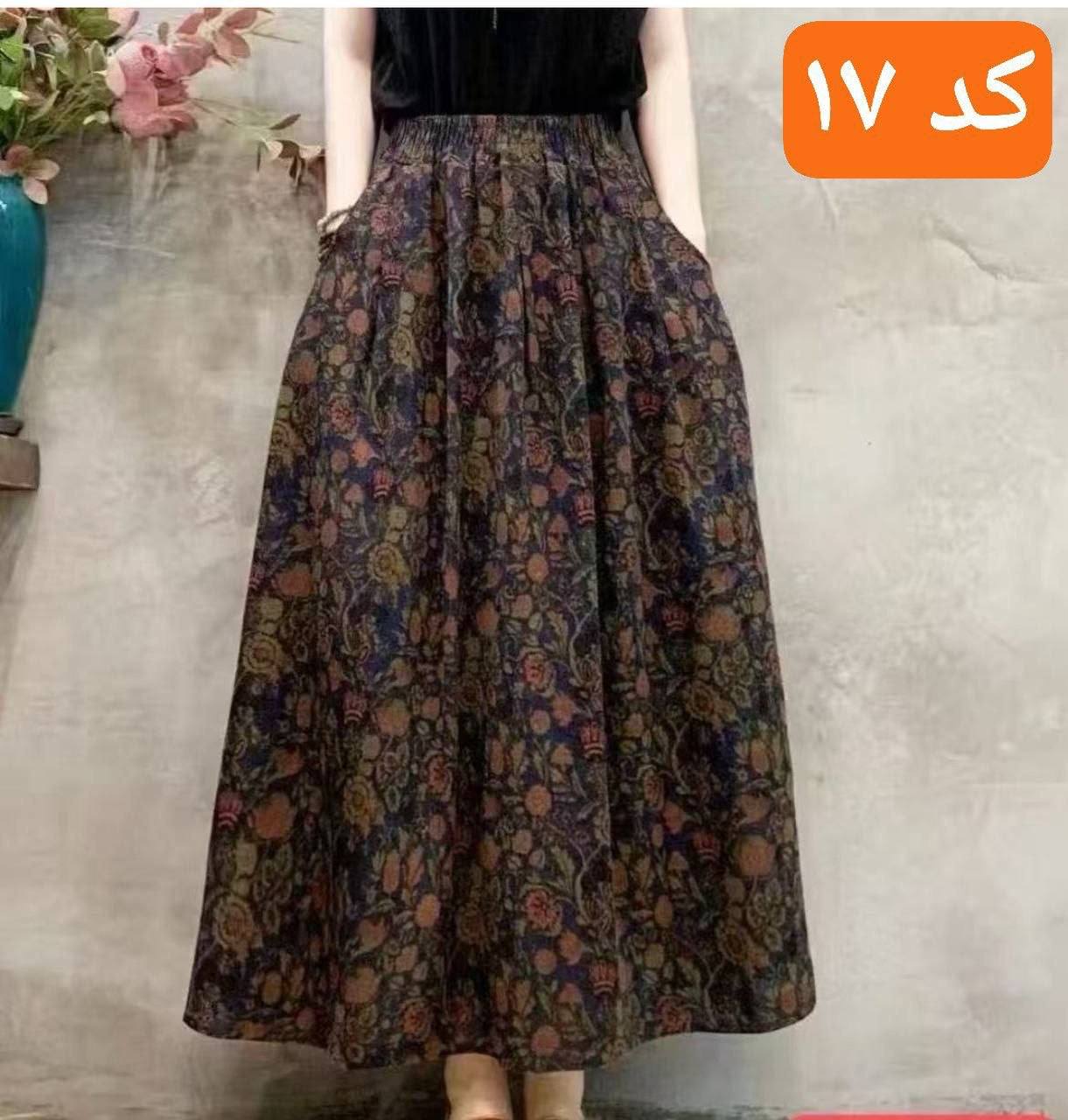 دامن کتان طرح سنتي كمر كش تراکم بالا گرم بالا فري سايز مناسب ٣٨/٤٠/٤٢/٤٤ جدول قد كار :١٠٠ سانت پهناكار:١٣٢ سانت