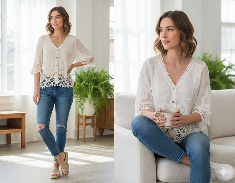 شومیز خامه دو وارداتی در دو رنگ ۳۰۹۴