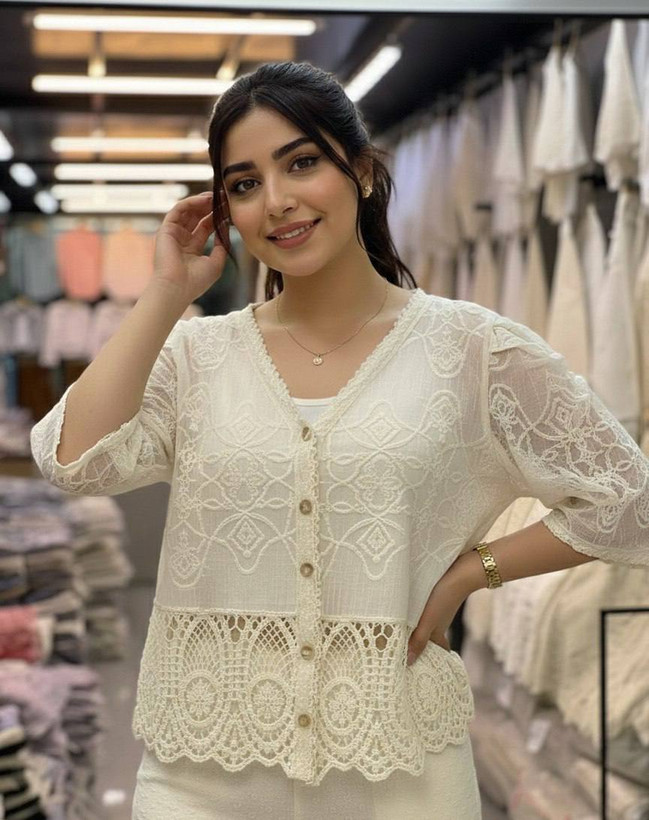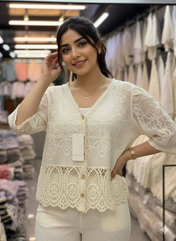 شومیز خامه دوزی وارداتی در دو رنگ ۳۱۱۱