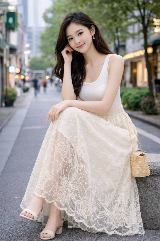 دامن گیپوری گلدوزی شده تکرنگ