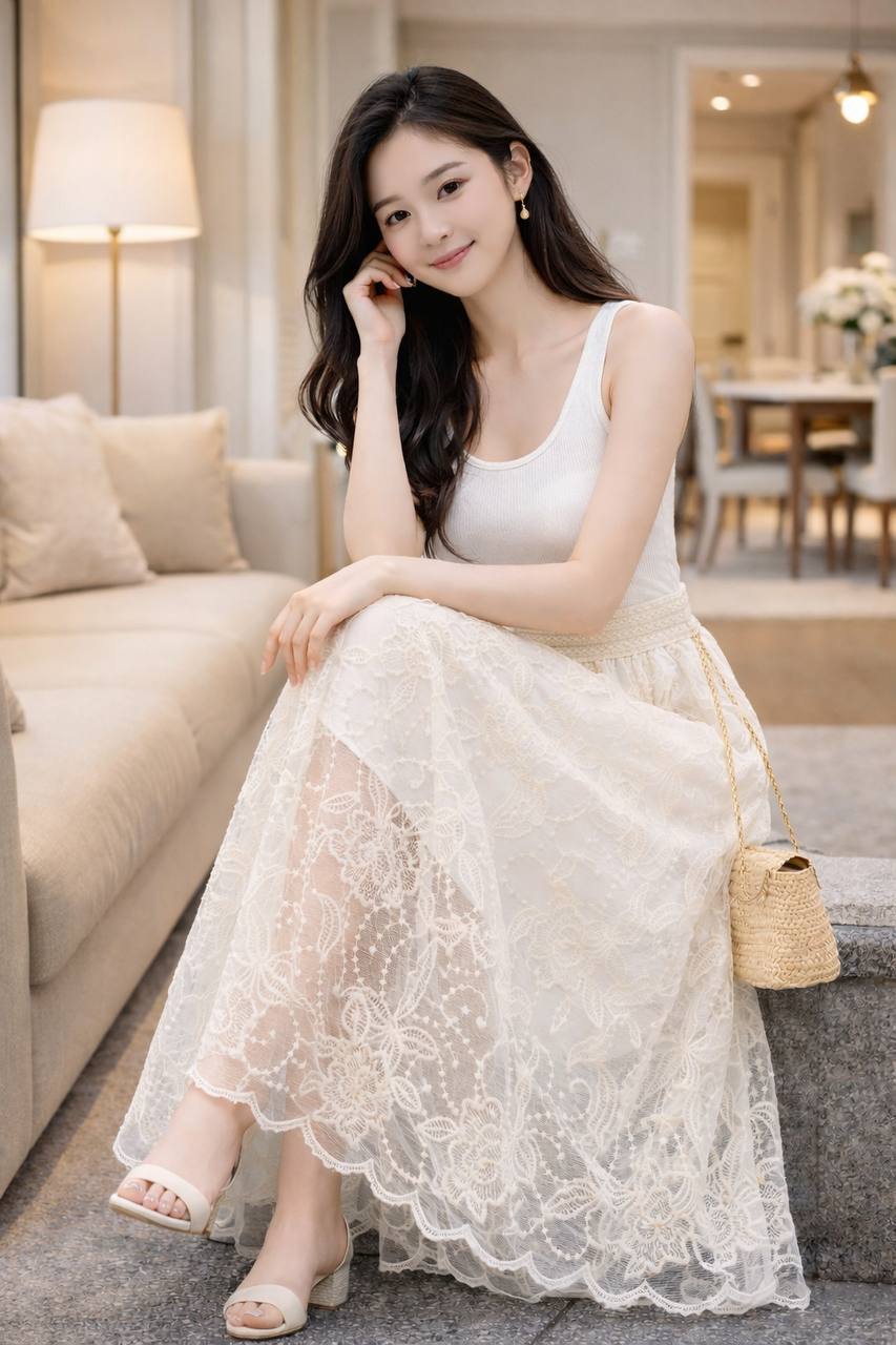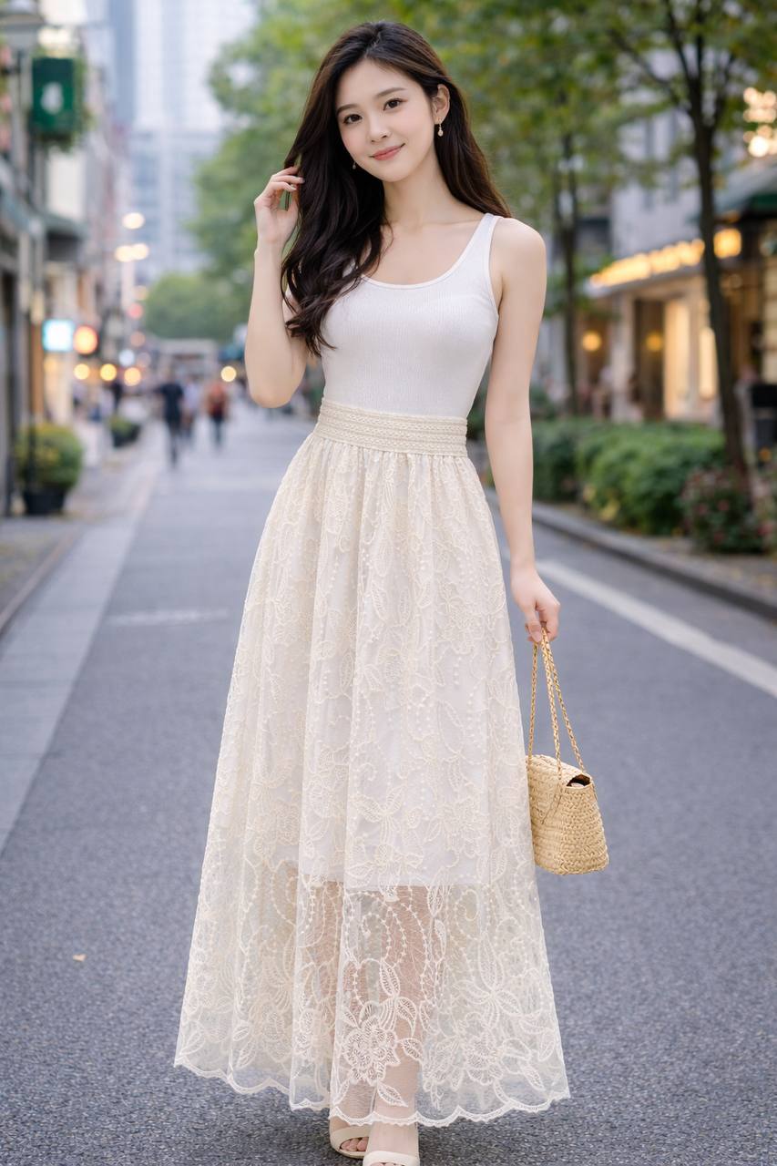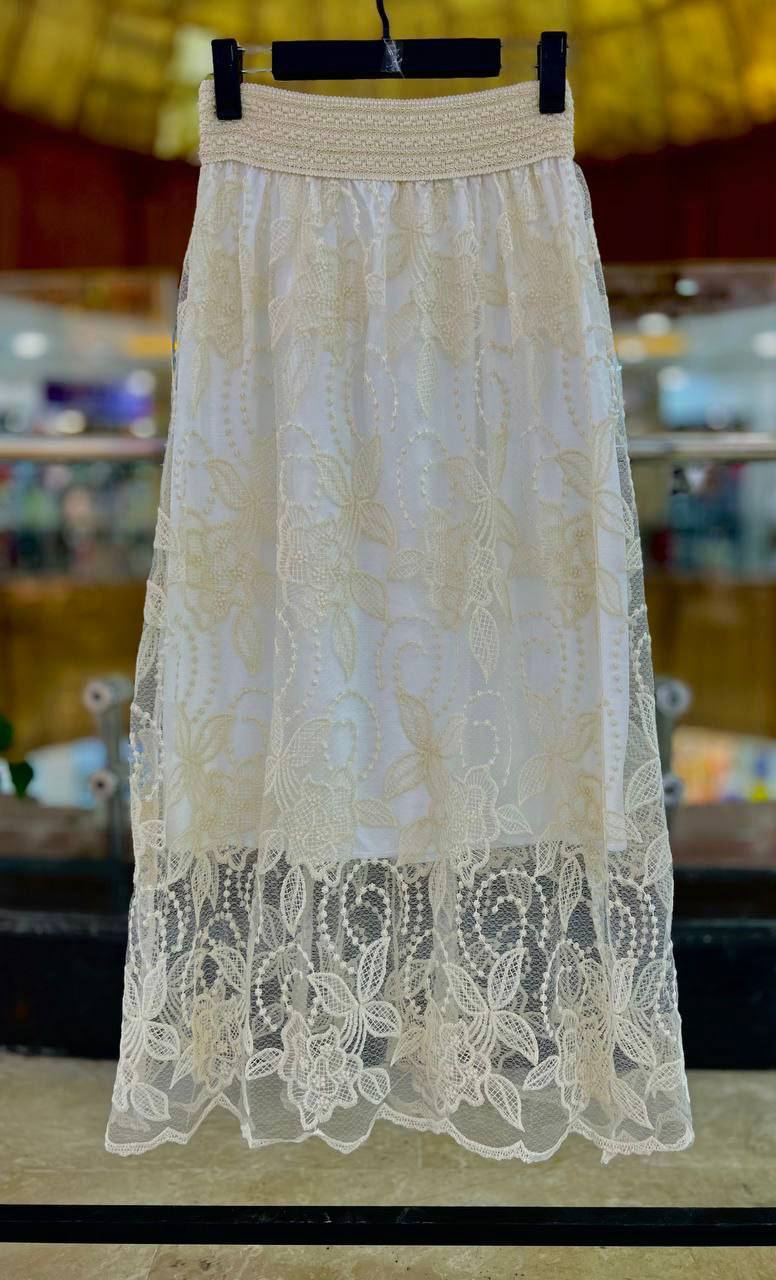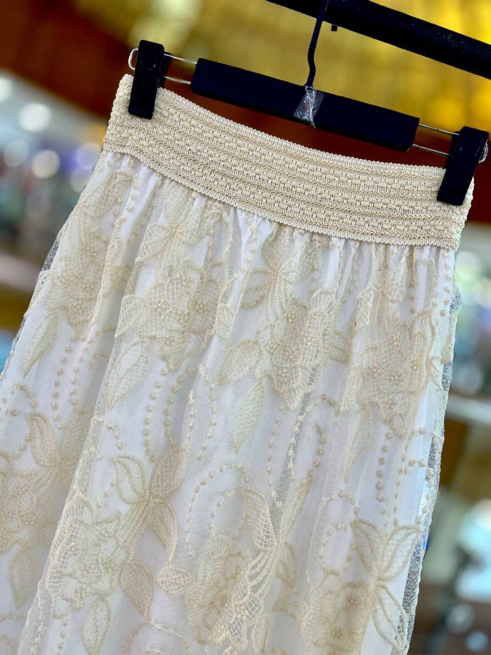 دامن گیپوری گلدوزی شده تکرنگ