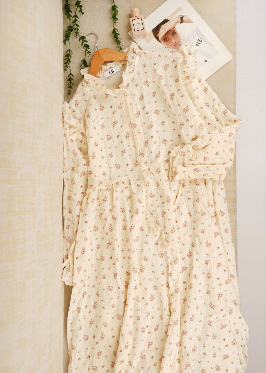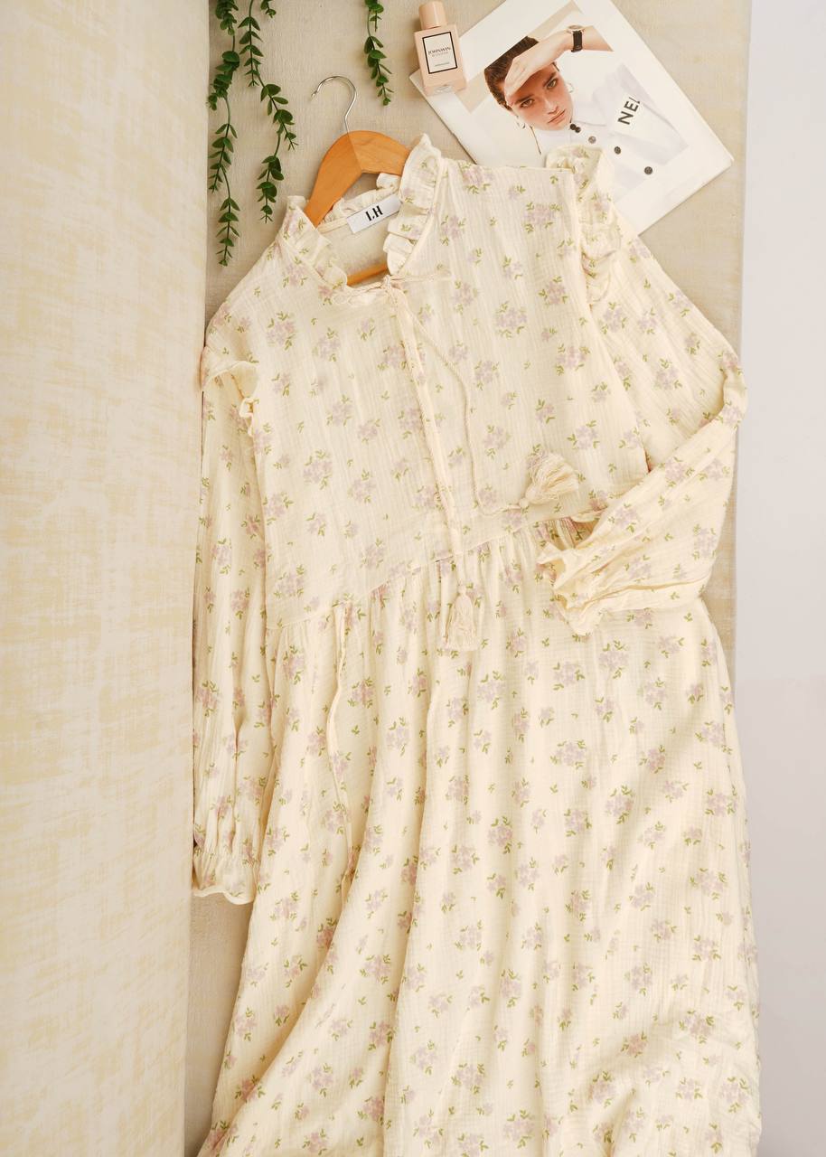 پیراهن بلند موسلین 😍 کیفیت جنس :عالی رنگ :چهار طرح سایز بندی : فری سایز مناسب ۳۸ الی ۴۸ قدکار :125 دورسینه : 110