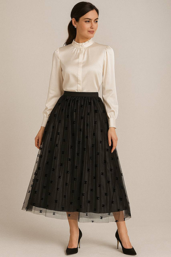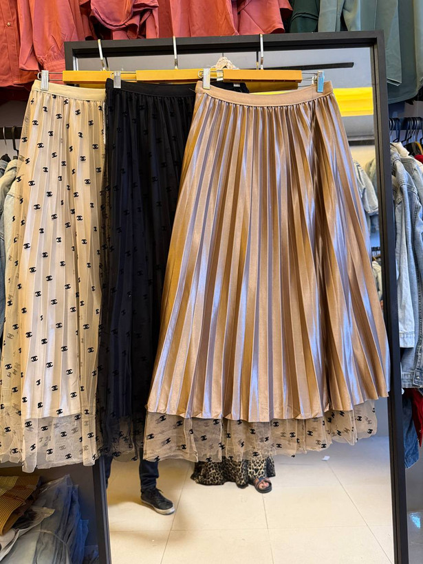 توضیحات: دامن دو رو حریر گل مخملی روی پشت ساتن فری سایز تا ۴۸ سه رنگ قد ۹۰
