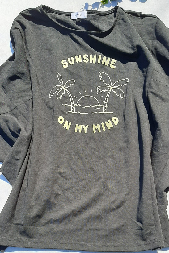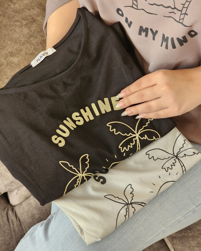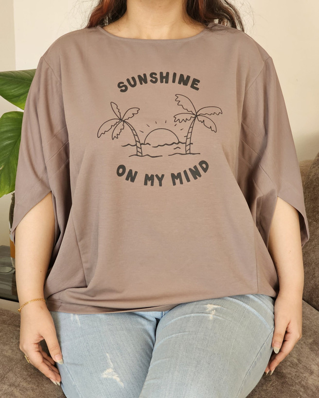 - تیشرت خفاشی نسکافه ای و مشکی طرح جزیره سایز فری ۳۸ تا ۴۸( عرض سینه ۹۲ بلندی ۶۴)