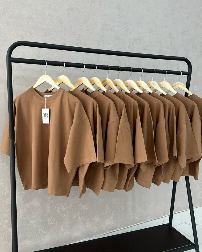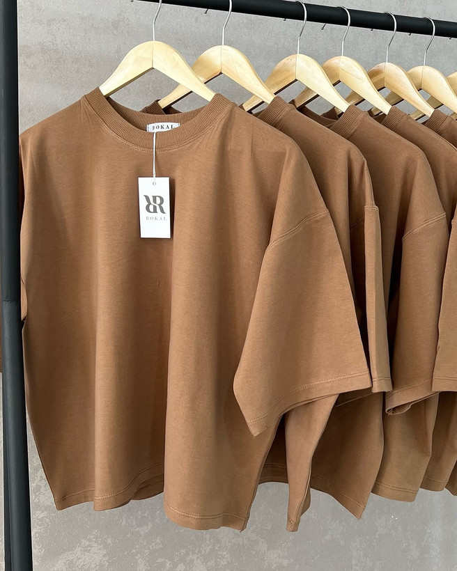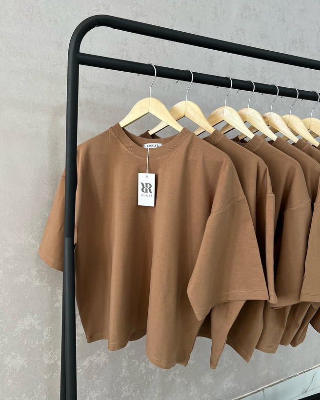خرید تیشرت باکسی قهوه ای با استایل آزاد و فری سایز، مناسب خانمها و آقایان. دوخت حرفهای، کیفیت بالا و ۱۰۰٪ پنبهای