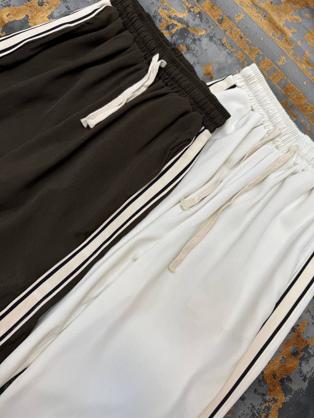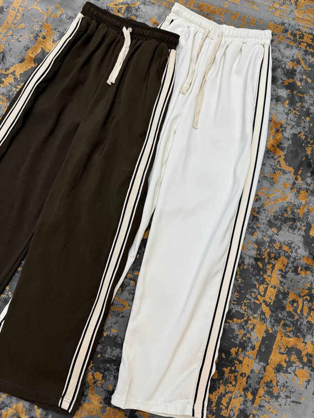 شلوار اسلش اسپرت با طراحی ساده و جذاب، استایل روزمره خود را بهروز کنید! این شلوار در دو رنگ قهوه ای و سفید با نوارهای کناری سفید و مشکی طراحی شده که جلوهای مدرن و اسپرت به استایل شما میدهد.ش