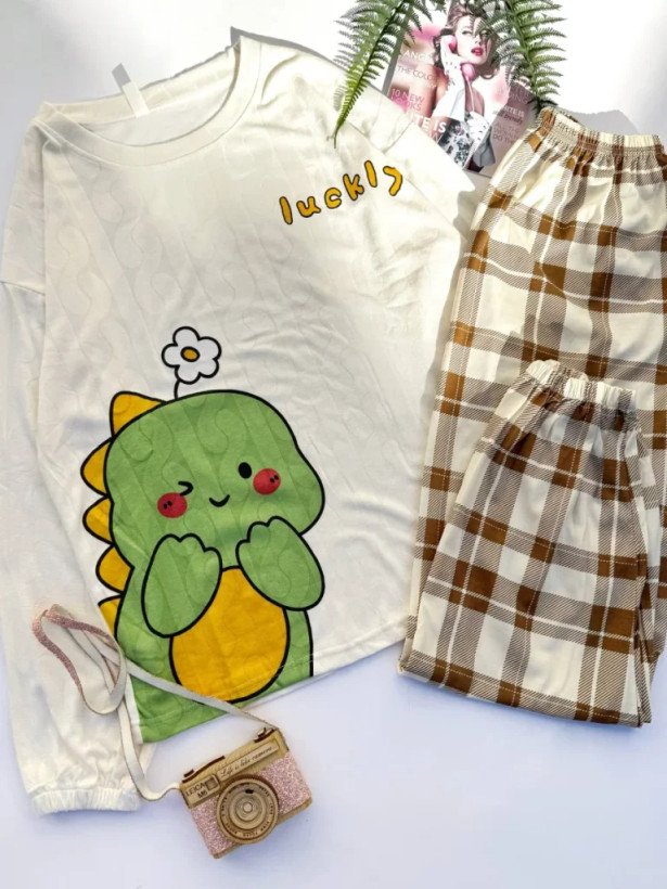 ست لباس راحتی زنانه و دخترانه دو تیکه بلوز آستین بلند و شلوار پنبه ای